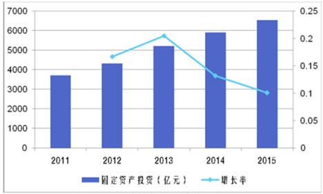 2011-2015 年我國(guo)橡膠和塑料制品(pin)固定資産投資情(qíng)況(不含農戶)